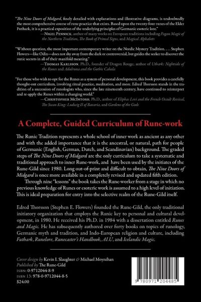 The Nine Doors of Midgard are the gateways to self-transformation and mastery through the Runes. This complete course of study and practice has been used by the initiates of the Rune-Gild since 1980. Long out-of-print to the wider public and difficult to obtain, it is now being made available in a completely revised and updated fifth edition. The Runic Tradition represents a whole school of inner work as ancient as any other and with the added importance that it is the ancestral, or natural, path for folks of Germanic (English, German, Dutch, and Scandinavian) background. The graded steps of The Nine Doors of Midgard are the only curriculum to take a systematic and traditional approach to inner Rune-work. Through nine "lessons" the book takes the Rune-worker from a stage in which no previous knowledge of Runes or esoteric work is assumed to a high level of initiation.