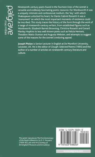 What was the appeal of 'the Sonnet's scanty plot of ground' to Romantic and Victorian poets? How did a form which had fallen into disuse in the early eighteenth-century become a central and enduring part of nineteenth-century poetry? This study traces the history and development of the sonnet throughout the nineteenth-century, examining the work of Wordsworth, Keats, Elizabeth Barrett Browning, Christina Rossetti, George Meredith and a number of other key canonical and non-canonical writers.