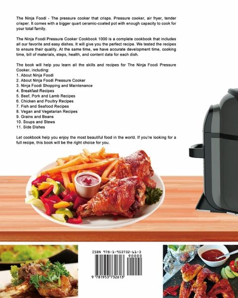 The Ninja Foodi - The pressure cooker that crisps. Pressure cooker, air fryer, tender crisper. It comes with a bigger quart ceramic-coated pot with enough capacity to cook for your total family. The Ninja Foodi Pressure Cooker Cookbook 1000 is a complete cookbook that includes all our favorite and easy dishes. It will give you the perfect recipe. We tested the recipes to ensure their quality. At the same time, we have accurate development time, cooking time, bill of materials, steps, health, and content data for each dish. The book will help you learn all the skills and recipes for The Ninja Foodi Pressure Cooker, including: 1. About Ninja Foodi 2. About Ninja Foodi Pressure Cooker 3. Ninja Foodi Shopping and Maintenance 4. Breakfast Recipes 5. Beef, Pork and Lamb Recipes 6. Chicken and Poultry Recipes 7. Fish and Seafood Recipes 8. Vegan and Vegetarian Recipes 9. Grains and Beans 10. Soups and Stews 11. Side Dishes Let cookbook help you enjoy the most beautiful food in the world. If you're looking for a full recipe, this book will be the right choice for you.