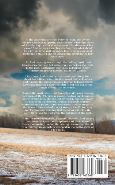 In the charming town of Pineville, boutique owner Andrea Larsen is grappling with the overwhelming sense of loss during the Christmas season. The absence of her beloved Mama casts a somber shadow over what should be a joyous time, making every festive decoration and twinkling light feel like an unwelcome reminder of her loneliness. As Andrea navigates through the holiday hustle and bustle, she can't help but reflect on the choices she made in the past, particularly her hasty judgment of her former boyfriend, cowboy Lawrence Collins. Little does Andrea know, Lawrence hasn't forgotten about her either. Determined to mend the broken ties and reignite the flame that once burned between them, Lawrence hatches a heartfelt plan to get her out to the ranch so they can reconnect. Amidst the rustic charm of Pineville and the enchanting backdrop of the Christmas season, Andrea and Lawrence discover that love, like the holiday spirit, has the power to heal even the deepest wounds. Through heartfelt conversations, rediscovered memories, and the magic of the season, they embark on a journey of self-discovery and forgiveness, learning that sometimes it takes the warmth of love to melt away the coldness of the past. In this heartwarming tale of second chances, Andrea and Lawrence navigate the complexities of their shared history, ultimately finding the courage to unwrap the gift of a renewed relationship, wrapped in the festive glow of Christmas.