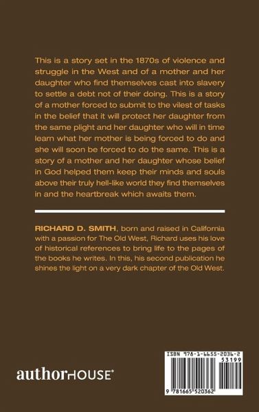 This is a story set in the 1870s of violence and struggle in the West and of a mother and her daughter who find themselves cast into slavery to settle a debt not of their doing. This is a story of a mother forced to submit to the vilest of tasks in the belief that it will protect her daughter from the same plight and her daughter who will in time learn what her mother is being forced to do and she will soon be forced to do the same. This is a story of a mother and her daughter whose belief in God helped them keep their minds and souls above their truly hell-like world they find themselves in and the heartbreak which awaits them.