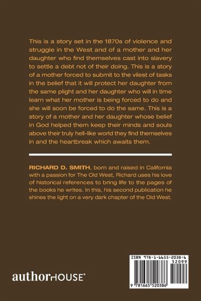 This is a story set in the 1870s of violence and struggle in the West and of a mother and her daughter who find themselves cast into slavery to settle a debt not of their doing. This is a story of a mother forced to submit to the vilest of tasks in the belief that it will protect her daughter from the same plight and her daughter who will in time learn what her mother is being forced to do and she will soon be forced to do the same. This is a story of a mother and her daughter whose belief in God helped them keep their minds and souls above their truly hell-like world they find themselves in and the heartbreak which awaits them.