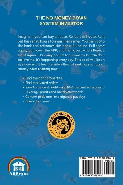 Imagine if you can buy a house. Rehab this house. Rent out this rehab house to a qualified renter. You then go to the bank and refinance this beautiful house. Pull some equity out, lower the APR, and then guess what? Repeat. Do it again. This may sound too good to be true but believe me, it's happening every day. This book will be an eye-opener. It has the side effect of making you lots of money. Start reading now! * Find the right properties.* Find motivated sellers.* Earn 60 percent profit on a 10-0 percent investment.* Leverage profits and build your wealth.* Convert problems into gigantic paydays.* Take action now!