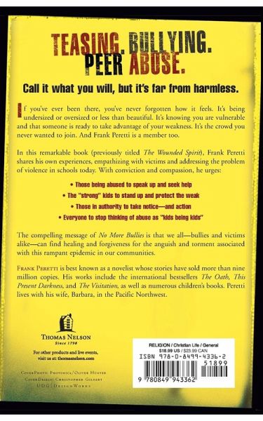 If you've ever been there, you've never forgotten how it feels. It's being undersized or oversized or less than beautiful. It's knowing you are vulnerable and that someone is ready to take advantage of your weakness. It's the fraternity you never wanted to join-the fellowship of the wounded spirit. And Frank Peretti is a member, too. In this powerful book, Frank Peretti shares his deeply personal story of growing up different, and the persecution he suffered because of it. And from this reservoir of memories he urges: those being abused to speak up and seek help those in authority to take notice- and action the "strong" kids to stand up and protect the weak- not prey upon them all of us to stop thinking of abuse as "normal" or as "kids being kids" This groundbreaking work shows how we all - bullies and victims alike - can find both healing and forgiveness from the anguish and torment associated with the growing epidemic of bullying.