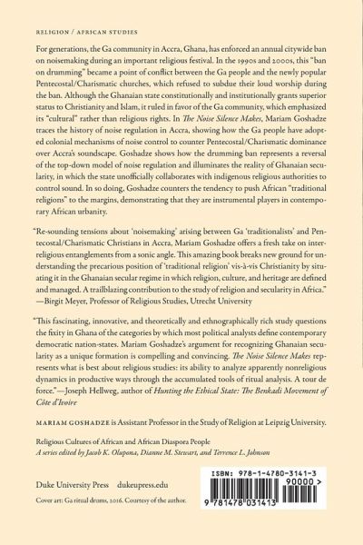 For generations, the Ga community in Accra, Ghana, has enforced an annual citywide ban on noisemaking during an important religious festival. In the 1990s and 2000s, this "ban on drumming" became a point of conflict between the Ga people and the newly popular Pentecostal/Charismatic churches, which refused to subdue their loud worship during the ban. Although the Ghanaian state constitutionally and institutionally grants superior status to Christianity and Islam, it ruled in favor of the Ga community, which emphasized its "cultural" rather than religious rights. In The Noise Silence Makes, Mariam Goshadze traces the history of noise regulation in Accra, showing how the Ga people have adopted colonial mechanisms of noise control to counter Pentecostal/Charismatic dominance over Accra's soundscape. Goshadze shows how the drumming ban represents a reversal of the top-down model of noise regulation and illuminates the reality of Ghanaian secularity, in which the state unofficially collaborates with indigenous religious authorities to control sound. In so doing, Goshadze counters the tendency to push African "traditional religions" to the margins, demonstrating that they are instrumental players in contemporary African urbanity.