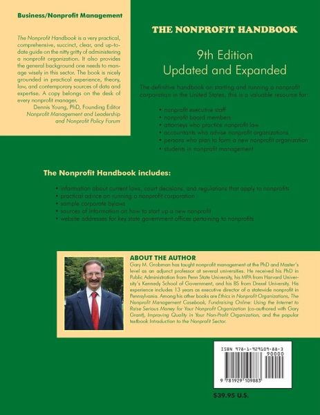 The Nonprofit Handbook, 9th Edition, is the most up-to-date and useful publication for those starting a nonprofit or for those already operating one. This Handbook is based on The Pennsylvania Nonprofit Handbook, a book originally published in 1992 with the help of more than two-dozen nonprofit executives and attorneys and now in its 11th edition. Each easy-to-read chapter includes a synopsis, useful tips, and resources to obtain more information. This essential reference tool includes: Information about current laws, court decisions, and regulations that apply to nonprofits; two full pages devoted to each state and the District of Columbia; practical advice on running a nonprofit, including chapters on grant-writing, communications, fundraising, quality management, insurance, marketing, lobbying, personnel, fiscal management, nonprofit ethics, and more.. Included is information on applying for federal and state tax-exempt status, how to write effective grant applications, how to hire and fire, Internet resources for nonprofits, how to develop a strategic plan, and how to plan for a program evaluation.