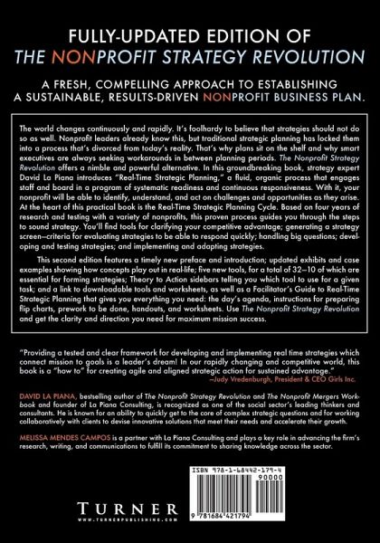 In this groundbreaking book, strategy expert David La Piana introduces "Real-Time Strategic Planning," a fluid, organic process that engages staff and board in a program of systematic readiness and continuous responsiveness. You’ll find tools for clarifying your competitive advantage; generating a strategy screen—criteria for evaluating strategies to be able to respond quickly; handling big questions; developing and testing strategies; and implementing and adapting strategies.