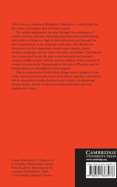 This 1990 book is a reading of Euripides' Hippolytos, a central play for the study of Euripides and of Greek tragedy. Dr Goff approaches the play through the techniques of modern literary criticism, including deconstruction and feminism, and is able to shed light on this influential text through her close examination of the language of the play. She divides her discussion into five important critical issues: gender, desire, violence, language and the status of poetry and drama. Throughout she is concerned to site the play in the historical and cultural context of fifth-century Athens, and her analysis of the position of women is particularly illuminating for the role of Phaedra, and for female characters throughout Greek tragedy. This is a provocative book which brings critical insights to one of the most extensively discussed of all Greek tragedies. It will be accessible both to classicists and students of drama and literary theory.