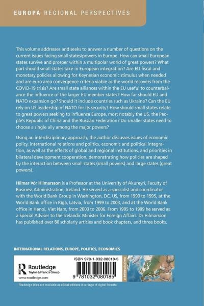 This volume addresses and seeks to answer a number of questions on the current issues facing small states/powers in Europe. How can small European states survive and prosper within a multipolar world of great powers? What part should small states take in European integration? Are EU fiscal and monetary policies allowing for Keynesian economic stimulus when needed and are euro area convergence criteria viable as the world recovers from the COVID-19 crisis? Are small state alliances within the EU useful to counterbalance the influence of the larger EU member states? How far should EU and NATO expansion go? Should it include countries such as Ukraine? Can the EU rely on US leadership of NATO for its security? How should small states relate to great powers seeking to influence Europe, most notably the US, the People's Republic of China and the Russian Federation? Do smaller states need to choose a single ally among the major powers?