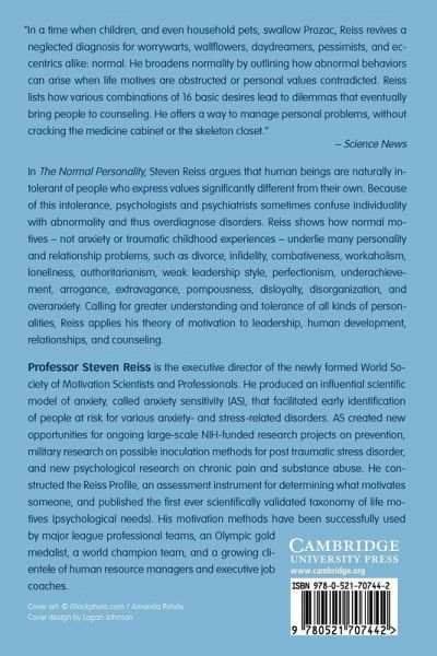 In The Normal Personality, Steven Reiss argues that human beings are naturally intolerant of people who express values significantly different from their own. Reiss shows how normal motives underlie many personality and relationship problems. Reiss applies his theory of motivation to leadership, human development, relationships, and counselling.