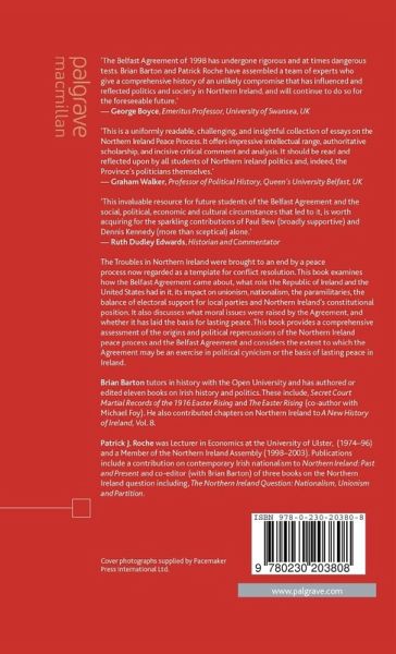 'The Belfast Agreement of 1998 has undergone rigorous and at times dangerous tests. Brian Barton and Patrick Roche have assembled a team of experts who give a comprehensive history of an unlikely compromise that has influenced and reflected politics and society in Northern Ireland, and will continue to do so for the foreseeable future.' - George Boyce, Emeritus Professor, University of Swansea, UK