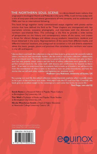 The northern soul scene is a dance-based music culture that originated in the English North and Midlands in the early 1970s. It still thrives today with a mix of sixty-year-olds and several generations of new converts, and its celebration of 1960s soul has an international following. This co-produced book brings together newly commissioned essays together with pivotal earlier articles that have defined the field so far. These chapters are interspersed with key journalistic articles, evocative photographs, and interviews with the directors of northern soul-themed films. This anthology is the first to provide a wide variety of perspectives on the history and contemporary nature of the scene, and creates a forum for vibrant dialogue and debate amongst academic researchers, students and those immersed in the scene. Representations of the scene from different media, and different historical locations, are juxtaposed to construct a rich and diverse statement about the music, people, places and practices that constitute the northern soul scene in the UK and beyond.