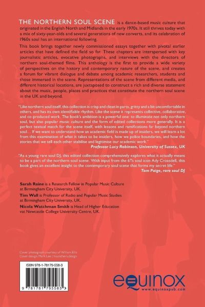 The northern soul scene is a dance-based music culture that originated in the English North and Midlands in the early 1970s. It still thrives today with a mix of sixty-year-olds and several generations of new converts, and its celebration of 1960s soul has an international following. This co-produced book brings together newly commissioned essays together with pivotal earlier articles that have defined the field so far. These chapters are interspersed with key journalistic articles, evocative photographs, and interviews with the directors of northern soul-themed films. This anthology is the first to provide a wide variety of perspectives on the history and contemporary nature of the scene, and creates a forum for vibrant dialogue and debate amongst academic researchers, students and those immersed in the scene. Representations of the scene from different media, and different historical locations, are juxtaposed to construct a rich and diverse statement about the music, people, places and practices that constitute the northern soul scene in the UK and beyond.