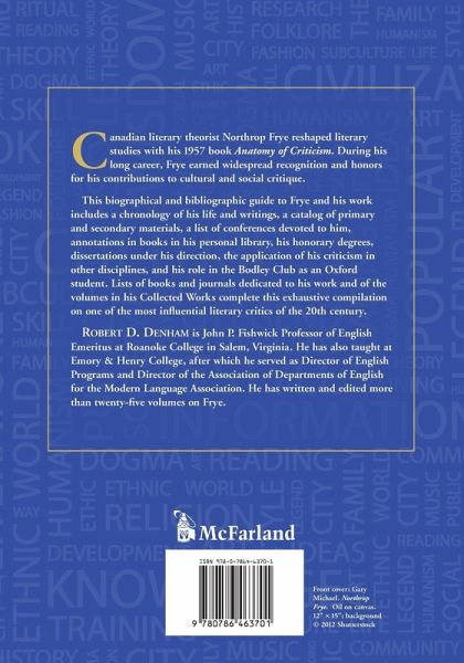Canadian literary theorist Northrop Frye reshaped literary studies with his 1957 book Anatomy of Criticism. During his long career, Frye earned widespread recognition and honors for his contributions to cultural and social critique. This biographical and bibliographic guide to Frye and his work includes a chronology of his life and writings, a catalog of primary and secondary materials, a list of conferences devoted to him, annotations in books in his personal library, his honorary degrees, dissertations under his direction, the application of his criticism in other disciplines, and his role in the Bodley Club as an Oxford student. Lists of books and journals dedicated to his work and of the volumes in his Collected Works complete this exhaustive compilation on one of the most influential literary critics of the 20th century.