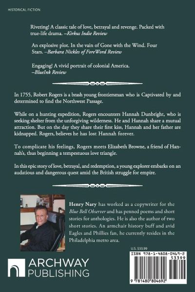 In 1755, Robert Rogers is a brash young frontiersman from New Hampshire's wilderness who is determined to find the Northwest Passage. Captivated by hearsay lore and his daring dream, Rogers wants nothing more than to walk over the horizon and never come back. While on a hunting expedition one day, Rogers encounters a reverend and his daughter, Hannah Dunbright, who are seeking shelter from the unforgiving wilderness. He invites the pair back to his cabin, where he realizes that he and Hannah share a mutual attraction. But on the day they share their first kiss, Hannah and her father are kidnapped by Captain Andre Durantaye, a cunning French-Canadian coureur de bois. Meanwhile Rogers, who believes he has lost Hannah forever, attends a governor's ball, where he meets Elizabeth Browne, a friend of Hannah's; it seems she also has her eyes on the frontiersman. As events unfold, one of the women betrays him and the other seeks revenge--the consequences of the tempestuous love triangle. In this epic story of love, betrayal, and redemption, a young explorer embarks on an audacious and dangerous quest to fulfill his dream amid the British struggle for empire and revocation.