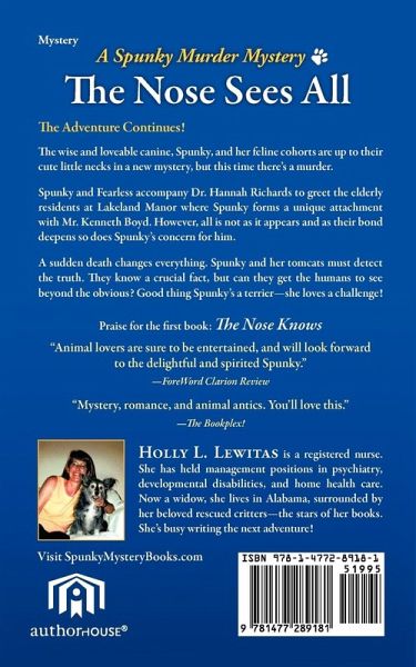 The Adventure Continues! The wise and loveable canine, Spunky, and her feline cohorts are up to their cute little necks in a new mystery, but this time there's a murder. Spunky and Fearless accompany Dr. Hannah Richards to greet the elderly residents at Lakeland Manor where Spunky forms a unique attachment with Mr. Kenneth Boyd. However, all is not as it appears and as their bond deepens so does Spunky's concern for him. A sudden death changes everything. Spunky and her tomcats must detect the truth. They know a crucial fact, but can they get the humans to see beyond the obvious? Good thing Spunky's a terrier - she loves a challenge! Praise for the first book: The Nose Knows "Animal lovers are sure to be entertained, and will look forward to the delightful and spirited Spunky." -ForeWord Clarion Review "Mystery, romance, and animal antics. You'll love this." -The Bookplex!