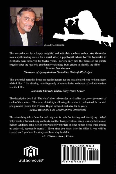On June 25, 1965, Carol McCamish Casey was brutally murdered in the rural Bullitt County, Kentucky, home of her lover, Paul Vincent Bugali. Twenty-four hours later, Bugali, and Carol's husband, Patrick Sean Casey, were the primary suspects. Nine months later, the homicide was still unsolved and the Casey murder list of suspects had expanded to include two homosexual, four bisexual, and several heterosexual males, including a defrocked Catholic priest. It also included a Mr. X; his sexual orientation was unknown. On July 1, 1977, Jewel Anne Lott, a fifty-four-year-old Hickman, Kentucky widow, became the seventh female victim of the SPN Killer of Kentucky-the title that investigators labeled the psychopathic serial killer in 1969, after he murdered the third woman, Pat Manakis. Remarkably, all the victims were anatomically similar; only their eyes and hair colors demonstrated notable differences. All tested positive to recent semen residue although there was no evidence indicating rape or rough sexual intercourse had taken place. All but one, the widow, were still married and murdered within fifty miles of Louisville. All the women had been killed in a most macabre manner, and the horrid nature of their bodies suggested they had undergone a tortuous last few minutes of life. All were left with a written, tell-tale reason for their murder-The Note. The location where the killer left this fingerprint-like evidence on each body was grotesque enough to evoke vomiting episodes in several of the most hardened criminal investigators. Ironically, all seven women had been romantically involved with Paul Vincent Bugali during the twelve-year killing spree. Twenty minutes after the last homicide, the elusive serial killer was apprehended by the most unlikely lawman in the small river port town of Hickman, Kentucky.