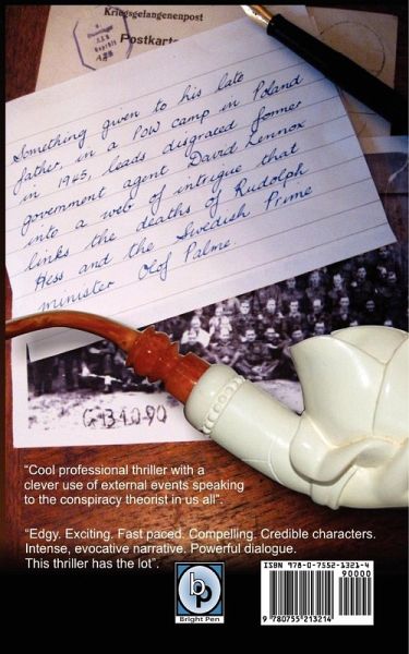 Something given to his late father, in a POW camp in Poland in 1945, leads disgraced former government agent David Lennox into a web of intrigue that links the deaths of Rudolph Hess and Swedish Prime Minister Olof Palme.