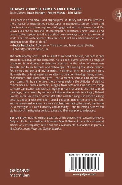The contemporary novel is not as silent as we tend to believe, nor does it only attend to human plots and characters. As this book shows, writers in a range of subgenres have devoted considerable attention to the voices of nonhuman animals, and to the histories and technologies of listening that shape twenty-first-century cultures and environments. In doing so, their multispecies novels illuminate the cultural meanings we attach to creatures like dogs, frogs, whales, chimpanzees, and Tasmanian tigers - not to mention various bird species and even plants. At the same time, these stories explore the attitudes of distinct communities of human listeners, ranging from vets and musicians to chimp caretakers and sonar technicians. In highlighting animal sounds and their cultural meanings, these novels by authors including Amitav Ghosh, Julia Leigh, Richard Powers, Karen Joy Fowler, Cormac McCarthy, and Han Kang also enrich pressing debates about species extinction, sound pollution, nonhuman communication, and human-animal relations. As we are violently reshaping the planet, they invite us to reimagine our own humanity and animality - and to rethink how we tell stories about multispecies contact zones and their complex soundscapes.