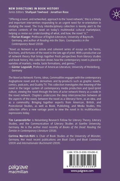 Chapter 1: Introduction: The Novel as Network, Tim Lanzendörfer and Corinna Norrick-Rühl.- Chapter 2: Introduction: Novel Forms, Tim Lanzendörfer.- Chapter 3: The Novel's Novelty Now, Mathias Nilges.- Chapter 4: The Cosmopolitan Value of the Multicultural Novel, Kristian Shaw.- Chapter 5: The Novel Network and the Work of Genre, Tim Lanzendörfer.- Chapter 6: Can a Novel Contain a Comic? Graphic Nerd Ecology in Contemporary US Fiction, Christopher Pizzino.- Chapter 7: Introduction: Novel Ideas, Tim Lanzendörfer and Corinna Norrick-Rühl.- Chapter 8: Speculative Nostalgia and Media of the New Intersectional Left: My Favorite Thing is Monsters, Stephen Shapiro.- Chapter 9: From Comic to Graphic and from Book to Novel: Sandman's Invisible Authors and the Quest for Literariness, Julia Round.- Chapter 10: Listening to the Literary: On the Novelistic Poetics of the Podcast, Patrick Gill.- Chapter 11: The Video Game Novel: Story-World Narratives, Novelization, and the Contemporary Novel's Network, Tamer Thabet and Tim Lanzendörfer.- Chapter 12: Introduction: Novel Commodities, Corinna Norrick-Rühl.- Chapter 13: Locating the Goods in Contemporary Literary Culture: Between the Book and the Archive, Jim Collins.- Chapter 14: Auratic Facsimile: The Print Novel in the Age of Digital Reproduction, Julia Panko.- Chapter 15: Sensing the Novel/Seeing the Book/Selling the Goods, Claire Squires.- Chapter 16: Shakespeare Novelized: Hogarth, Symbolic Capital, and the Literary Market, Jeremy Rosen.- Chapter 17: Reading the Small American Novel: The Aesthetic Agency of the Short Book in the Modern Literary Marketplace, Alexander Starre.