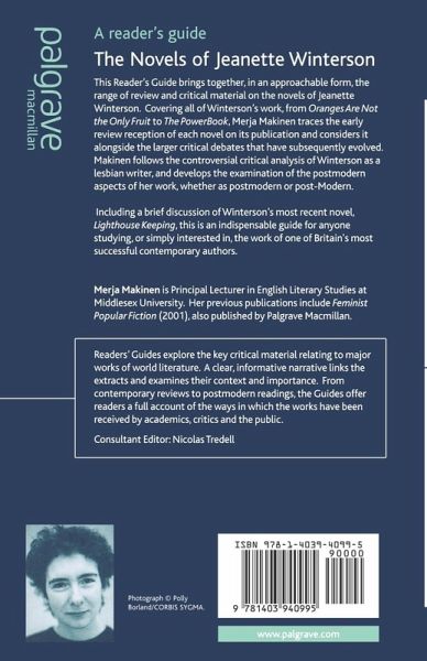 This Reader's Guide brings together, in an approachable form, the range of review and critical material on the novels of Jeanette Winterson. Covering all of Winterson's work, from Oranges are Not the Only Fruit to The PowerBook, Merja Makinen traces the early review reception of each novel on its publication and considers it alongside the larger critical debates that have subsequently evolved. Makinen follows the controversial critical analysis of Winterson as a lesbian writer, and develops the examination of the postmodern aspects of her work, whether as postmodern or post-Modern.