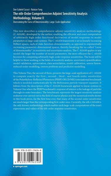 This text describes a comprehensive adjoint sensitivity analysis methodology (nth-CASAM), developed by the author, which enablesthe efficient and exact computation of arbitrarily high-order functional derivatives of model responses to model parameters in large-scale systems. The nth-CASAM framework is set in linearly increasing Hilbert spaces, each of state-function-dimensionality, as opposed to exponentially increasing parameter-dimensional spaces, thereby overcoming the so-called "curse of dimensionality" in sensitivity and uncertainty analysis. The nth-CASAM is applicable to any model; the…mehr