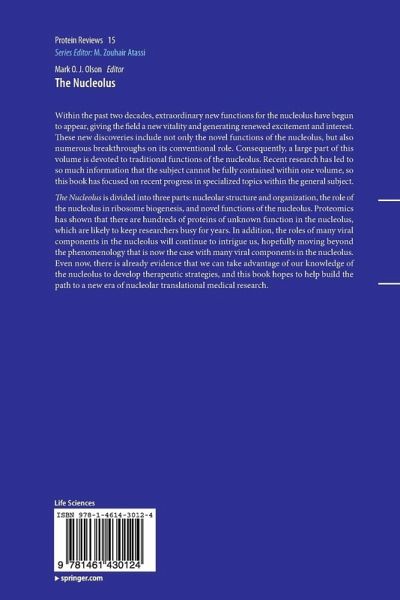 Nucleolar Structure and Organization.Structural organization of the nucleolus as a consequence of the dynamics of ribosome biogenesis.The dynamic proteome of the nucleolus.The Structure of rDNA Chromatin.The epigenetics of the nucleolus: structure and function of active and silent ribosomal RNA genes.UBF, an Essential Player in Maintenance of Active NORs and nucleolar formation.- Role of the Nucleolus in Ribosome Biogenesis.The RNA Polymerase I Transcription Machinery.Small Ribonucleoproteins in Ribosome Biogenesis.Crosstalk between ribosome synthesis and cell cycle progression and its potential implications in human genetic disease.The multiple properties and functions of nucleolin.The multifunctional nucleolar protein nucleophosmin/NPM/B23 and the nucleoplasmin family of proteins.Structure and function of NOPP140 and treacle.- Novel Functions of the Nucleolus.The Role of the Nucleolus in the Stress Response.New Frontiers in Nucleolar Research - Nucleostemin and Related Proteins.Viruses and the Nucleolus.Assembly of Signal Recognition Particles in the Nucleolus.Relationship of the Cajal Body to the Nucleolus.Role of the Nucleolus in HIV Infection and Therapy.