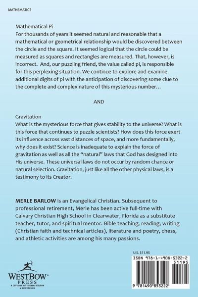 Mathematical Pi For thousands of years it seemed natural and reasonable that a mathematical or geometrical relationship would be discovered between the circle and the square. It seemed logical that the circle could be measured as squares and rectangles are measured. That, however, is incorrect. And, our puzzling friend, the value called pi, is responsible for this perplexing situation. We continue to explore and examine additional digits of pi with the anticipation of discovering some clue to the complete and complex nature of this mysterious number... AND Gravitation What is the mysterious force that gives stability to the universe? What is this force that continues to puzzle scientists? How does this force exert its influence across vast distances of space, and more fundamentally, why does it exist? Science is inadequate to explain the force of gravitation as well as all the "natural" laws that God has designed into His universe. These universal laws do not occur by random chance or natural selection. Gravitation, just like all the other physical laws, is a testimony to its Creator.