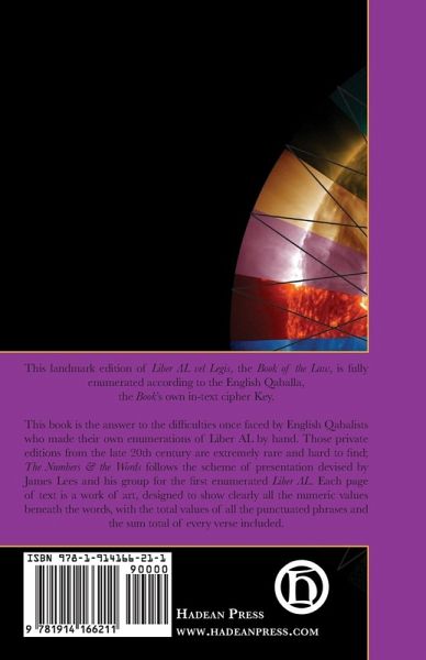 The Numbers & the Words is a comprehensive resource for anyone interested in the Book of the Law and the magic of its numerological unveiling. This book is the answer to the difficulties once faced by English Qabalists who made their own enumerations of Liber AL by hand. Those private editions from the late 20th century are extremely rare and hard to find; The Numbers & the Words follows the scheme of presentation devised by James Lees and his group for the first enumerated Liber AL. Each page of text is a work of art, designed to show clearly all the numeric values beneath the words, with the total values of all the punctuated phrases and the sum total of every verse included.