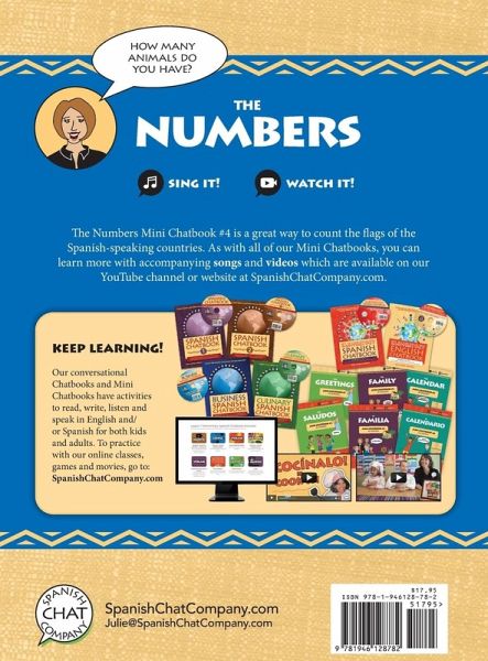 The Numbers Mini Chatbook goes with song #4 from the "Elementary English Chatbook." Our Chatbooks have activities to read, write, listen and speak in English and Spanish for kids and adults too. Learn more and buy the music at: https: //www.SpanishChatCompany.com