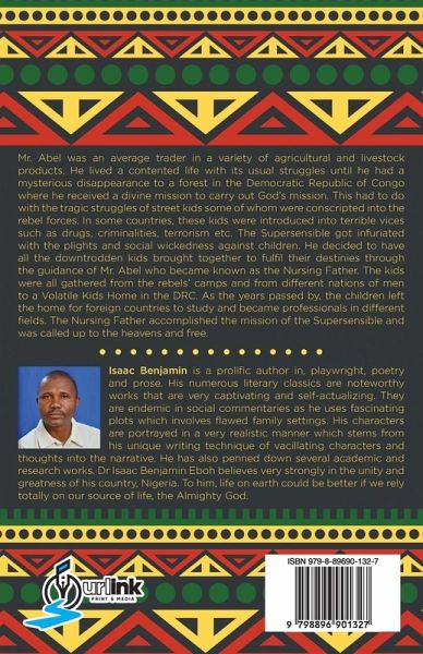 Mr. Abel was an average trader in a variety of agricultural and livestock products. He lived a contented life with its usual struggles until he had a mysterious disappearance to a forest in the Democratic Republic of Congo where he received a divine mission to carry out God's mission. This had to do with the tragic struggles of street kids some of whom were conscripted into the rebel forces. In some countries, these kids were introduced into terrible vices such as drugs, criminalities, terrorism etc. The Supersensible got infuriated with the plights and social wickedness against children. He decided to have all the downtrodden kids brought together to fulfil their destinies through the guidance of Mr. Abel who became known as the Nursing Father. The kids were all gathered from the rebels' camps and from different nations of men to a Volatile Kids Home in the DRC. As the years passed by, the children left the home for foreign countries to study and became professionals in different fields. The Nursing Father accomplished the mission of the Supersensible and was called up to the heavens and free.