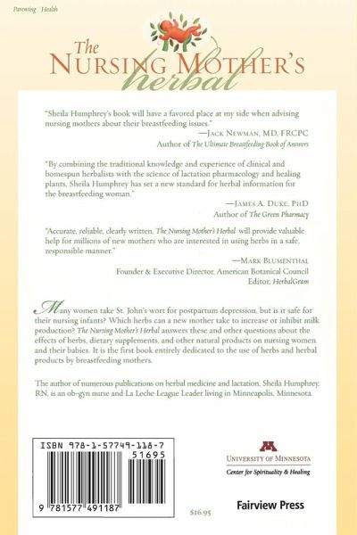 Many women take St.John's wort for post-partum depression, but is it safe for their nursing infants? Whcih herbs can a new mother take to increase or inhibit milk production? Are there natural remedies for mastitis or chronic yeast infections? This integrative guide answers these and other questions about the effects of herbs, dietary supplements, and other natural products on nursing women and their babies.