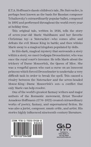 E.T.A. Hoffman's classic children's tale, The Nutcracker, is perhaps best known as the basis for Russian composer Tchaikovsky's extraordinarily popular ballet, composed in 1892 and performed throughout the world every year at holiday time. This original tale, written in 1816, tells the story of a seven year old girl, Marie Stahlbaum, and her favorite Christmas toy, a Nutcracker, who comes alive and, defeats the evil Mouse King in battle, and then whisks Marie away to a magical kingdom which is populated by dolls. In this dark, magical mystery that surrounds a story within a story, we meet Godpapa Drosselmeier, who was once the royal court's inventor. He tells Marie about the trickery of Dame Mouserink, the Queen of Mice. She was a vengeful queen who cast a curse on an innocent princess which forced Drosselmeier to undertake a very difficult task in order to break the spell. This caused a rivalry between the Nutcracker and the seven-headed Mouse-King - Dame Mouserink's son - a conflict that only Marie can help resolve. One of the world's greatest fantasy writers and one of the major authors of the Romantic movement, Ernst Theodor Amadeus Hoffmann (1776-1822) created extraordinary works of poetry, fantasy and supernatural fiction. He was also a jurist, composer, music critic and artist. His stories highly influenced 19th century literature.