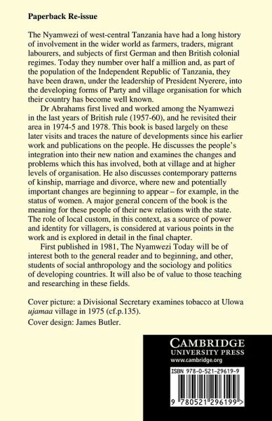 This book is based on Dr Abrahams' visits to the Nyamwezi of west-central Tanzania and traces the nature of developments since his earlier work.