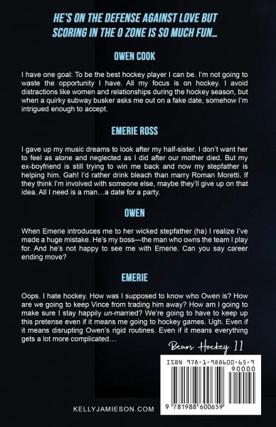 Owen Cook I have one goal: To be the best hockey player I can be. I'm not going to waste the opportunity I have. All my focus is on hockey. I avoid distractions like women and relationships during the hockey season, but when a quirky subway busker asks me out on a fake date, somehow I'm intrigued enough to accept. Emerie Ross I gave up my music dreams to look after my half-sister. I don't want her to feel as alone and neglected as I did after our mother died. But my ex-boyfriend is still trying to win me back and now my stepfather is helping him. Gah! I'd rather drink bleach than marry Roman Moretti. If they think I'm involved with someone else, maybe they'll give up on that idea. All I need is a man...a date for a party. Owen When Emerie introduces me to her wicked stepfather (ha) I realize I've made a huge mistake. He's my boss-the man who owns the team I play for. And he's not happy to see me with Emerie. Can you say career ending move? Emerie Oops. I hate hockey. How was I supposed to know who Owen is? How are we going to keep Vince from trading him away? How am I going to make sure I stay happily un-married? We're going to have to keep up this pretense even if it means me going to hockey games. Ugh. Even if it means disrupting Owen's rigid routines. Even if it means everything gets a lot more complicated...