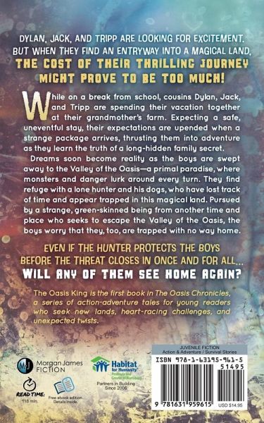 The Oasis King is an action-adventure tale for middle-grade readers searching for new lands, heart-racing challenges, and unexpected twists. When three young boys are transported to a strange, mystical paradise with unexpected threats, they fight to find a way back home.