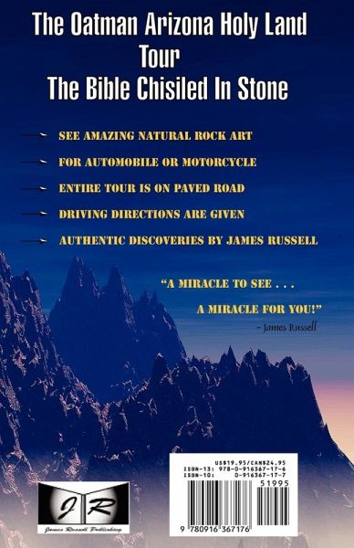 Self-guided 60 mile automobile and motorcycle tour of Arizona rock formations resembling Biblical scenes in Oatman, Arizona. This book has created a new tourist attraction near Laughlin, Nevada. The self-guided automobile and motorcycle tour is on old historic Route 66 and is entirely conducted on paved roads and is suitable for the handicapped with no hiking involved. A Christian book with Bible verses for each rock formation scene brings the Holy Land experience close to the heart. There are many natural rock-art formations in Oatman, Arizona that will amaze you. Buy this book and you will see things you have never seen before. 104 pages, 70 photographs.