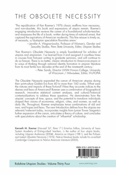 «Ken Roemer's Obsolete Necessity is simply foundational for scholars of utopias and utopianism. I've learned from it and assigned it countless times in courses from first-year writing to graduate seminars, and will continue to do so forever. There is no better, clearer introduction to America-as-utopia or to ways of thinking through national identity formation in utopian literature from its most fertile two decades at the end of the nineteenth century.»