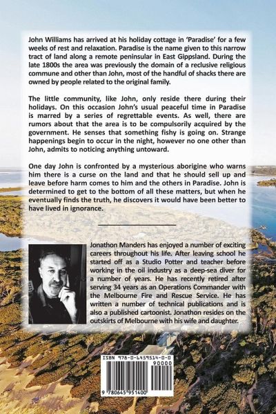 John Williams has arrived at his holiday cottage in 'Paradise' for a few weeks of rest and relaxation. Paradise is the name given to this narrow tract of land along a remote peninsular in East Gippsland. During the late 1800s the area was previously the domain of a reclusive religious commune and other than John, most of the handful of shacks there are owned by people related to the original family. The little community, like John, only reside there during their holidays. On this occasion John's usual peaceful time in Paradise is marred by a series of regrettable events. As well, there are rumors about that the area is to be compulsorily acquired by the government. He senses that something fishy is going on. Strange happenings begin to occur in the night, however no one other than John, admits to noticing anything untoward. One day John is confronted by a mysterious aborigine who warns him there is a curse on the land and that he should sell up and leave before harm comes to him and the others in Paradise. John is determined to get to the bottom of all these matters, but when he eventually finds the truth, he discovers it would have been better to have lived in ignorance.