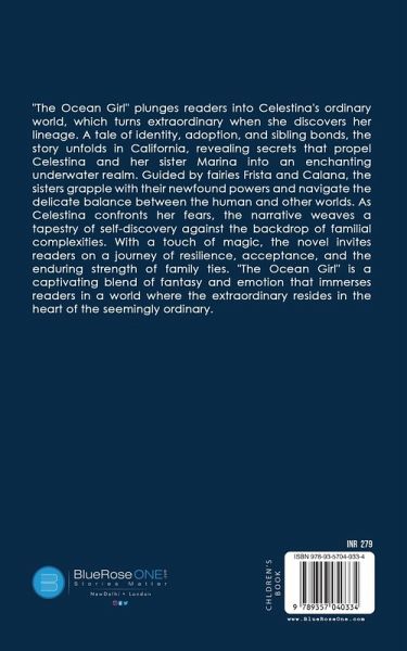 The Ocean Girl" plunges readers into Celestina's ordinary world, which turns extraordinary when she discovers her lineage. A tale of identity, adoption, and sibling bonds, the story unfolds in California, revealing secrets that propel Celestina and her sister Marina into an enchanting underwater realm. Guided by fairies Frista and Calana, the sisters grapple with their newfound powers and navigate the delicate balance between the human and other worlds. As Celestina confronts her fears, the narrative weaves a tapestry of self-discovery against the backdrop of familial complexities. With a touch of magic, the novel invites readers on a journey of resilience, acceptance, and the enduring strength of family ties. "The Ocean Girl" is a captivating blend of fantasy and emotion that immerses readers in a world where the extraordinary resides in the heart of the seemingly ordinary.