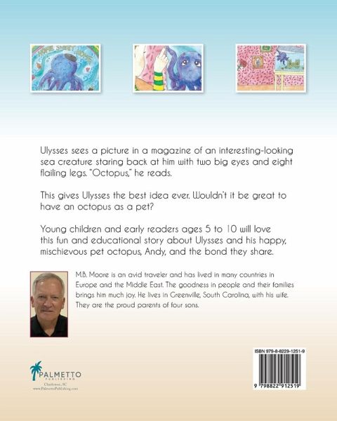 What would be the most unique and interesting pet any young girl or boy could ever have? Why, an octopus, of course! Come and meet Andy, a dwarf octopus! One day, as Ulysses is looking through a magazine about sea creatures, he comes across a picture of one with two bulbous eyes and eight legs staring back at him. Ulysses reads that the curious-looking creature is called an octopus. Then Ulysses gets the best idea! Wouldn't it be great to have an octopus as a pet? But Ulysses would have to convince Mom and Dad. Surely they will agree that it's a fine idea-won't they? They do! Now Operation Octopus begins! First, though, where will Ulysses keep his pet octopus? Hmmm ... . The vivid, brightly colored illustrations along with this fun and educational story capture the joy this pet dwarf octopus named Andy brings to Ulysses and the bond they share. Young children and early readers ages 5 to 10 will enjoy this happy, mischievous little sea creature and his explorations as he makes his new home with Ulysses and his mom and dad. At the same time, they will learn interesting facts about octopuses and how to take care of them.