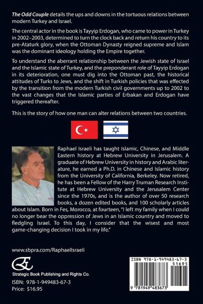 The Odd Couple details the ups and downs in the tortuous relations between modern Turkey and Israel. The central actor in the book is Tayyip Erdogan, who came to power in Turkey in 2002-2003, determined to turn the clock back and return his country to its pre-Ataturk glory, when the Ottoman Dynasty reigned supreme and Islam was the dominant ideology holding the Empire together. To understand the aberrant relationship between the Jewish state of Israel and the Islamic state of Turkey, and the preponderant role of Tayyip Erdogan in its deterioration, one must dig into the Ottoman past, the historical attitudes of Turks to Jews, and the shift in Turkish policies that was effected by the transition from the modern Turkish civil governments up to 2002 to the vast changes that the Islamic parties of Erbakan and Erdogan have triggered thereafter. This is the story of how one man can alter relations between two countries. Raphael Israeli has taught Islamic, Chinese, and Middle Eastern history at Hebrew University in Jerusalem. A graduate of Hebrew University in history and Arabic literature, he earned a Ph.D. in Chinese and Islamic history from the University of California, Berkeley. Now retired, he has been a Fellow of the Harry Truman Research Institute at Hebrew University and the Jerusalem Center since the 1970s, and is the author of over 50 research books, a dozen edited books, and 100 scholarly articles about Islam. Born in Fes, Morocco, at fourteen, "I left my family when I could no longer bear the oppression of Jews in an Islamic country and moved to fledgling Israel. To this day, I consider that the wisest and most game-changing decision I took in my life."
