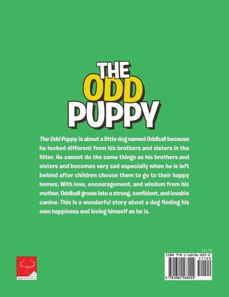 The Odd Puppy is about a little dog named Oddball because he looked different from his brothers and sisters in the litter. He cannot do the same things as his brothers and sisters and becomes very sad especially when he is left behind after children choose them to go to their happy homes. With love, encouragement, and wisdom from his mother, Oddball grows into a strong, confident, and lovable canine. This is a wonderful story about a dog finding his own happiness and loving himself as he is.
