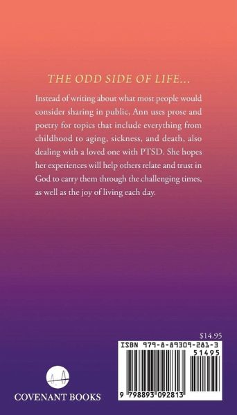 Instead of writing about what most people would consider sharing in public, Ann uses prose and poetry for topics that include everything from childhood to aging, sickness, and death, also dealing with a loved one with PTSD. She hopes her experiences will help others relate and trust in God to carry them through the challenging times, as well as the joy of living each day.