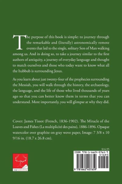 The purpose of this book is simple: to journey through the remarkable and (literally) astronomically remote events that led to the single, solitary Son of Man walking among us. And in doing so, to take a journey similar to the first authors of antiquity, a journey of everyday language and thought to match ourselves and those who today want to know what all the hubbub is surrounding Jesus. As you learn about just twenty-four of the prophecies surrounding the Messiah, you will walk through the history, the archaeology, the language, and the life of those who lived thousands of years ago so that you can better know them in terms that you can understand. More importantly, you will glimpse at why they did.