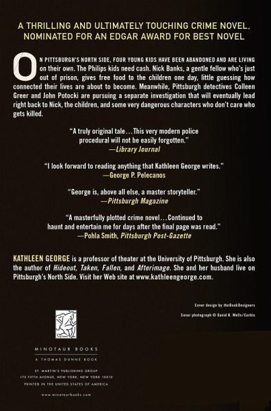 The Homicide Department is upside down-Richard Christie is in the hospital, Artie Dolan is headed away on vacation, John Potocki's life is falling apart, and Colleen Greer is so worried about her boss's health, she can hardly think. A young boy in Pittsburgh's North Side neighborhood dies of a suspicious overdose. The Narcotics police are working on tips and they draft Colleen and Potocki to help them. In this same neighborhood, four young kids have been abandoned and are living on their own. The Philips kids, brainy in school, are reluctant to compromise themselves. But they need cash. Connecting these people and their stories is Nick Banks, just out of prison and working off a debt to an old acquaintance involved in the drug trade. Nick is a charmer, a gentle fellow who's had a lot of trouble in his life. One day he gives free food to the Philips kids, little guessing how connected their lives are about to become. Kathleen George's latest work pushes the edge-a spectacularly original crime novel.