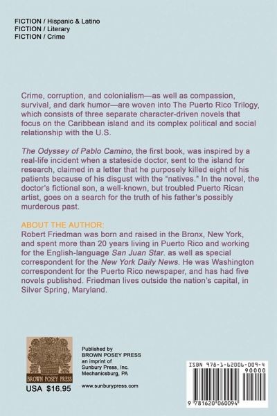 Crime, corruption, and colonialism-as well as compassion, survival, and dark humor-are woven into The Puerto Rico Trilogy, which consists of three separate character-driven novels that focus on the Caribbean island and its complex political and social relationship with the U.S. The Odyssey of Pablo Camino, the first book, was inspired by a real-life incident when a stateside doctor, sent to the island for research, claimed in a letter that he purposely killed eight of his patients because of his disgust with the "natives." In the novel, the doctor's fictional son, a well-known, but troubled Puerto Rican artist, goes on a search for the truth of his father's possibly murderous past.