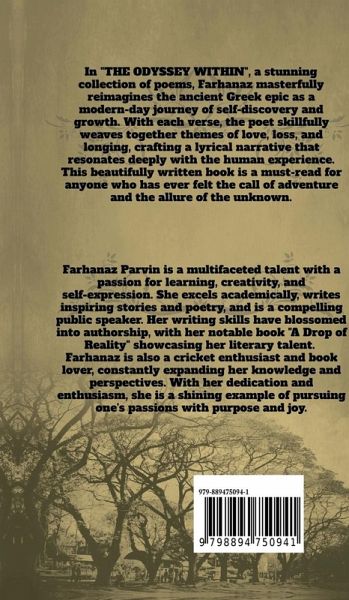 In "THE ODYSSEY WITHIN", a stunning collection of poems, Farhanaz masterfully reimagines the ancient Greek epic as a modern-day journey of self-discovery and growth. With each verse, the poet skillfully weaves together themes of love, loss, and longing, crafting a lyrical narrative that resonates deeply with the human experience. This beautifully written book is a must-read for anyone who has ever felt the call of adventure and the allure of the unknown.
