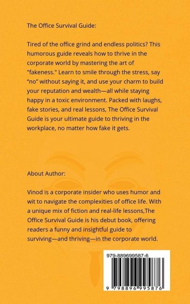 The Office Survival Guide: In the chaotic world of corporate offices, survival means mastering the art of faking it-while staying happy and growing! This laugh-out-loud guide blends humor with practical wisdom, teaching you how to navigate toxic work environments, say "no" without saying it, and maintain your sanity (and smile) through it all. Packed with hilarious fictional anecdotes and sharp insights, this book is your ultimate playbook for building income, reputation, and connections-all while having fun. Welcome to The Office Survival Guide. Time to fake it, make it, and love it!
