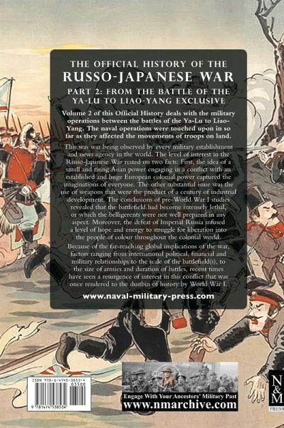 Volume 2 of this Official History deals with the military operations between the battles of the Yalu to Liao-Yang. The naval operations were touched upon in so far as they affected the movements of troops on land. ¿This was war being observed by every military establishment and news agency in the world. The level of interest in the Russo-Japanese War rested on two facts: First, the idea of a small and rising Asian power engaging in a conflict with an established and huge European colonial power captured the imaginations of everyone. The other substantial issue was the use of weapons that were the product of a century of industrial development. The conclusions of pre-World War I studies revealed that the battlefield had become intensely lethal, for which the belligerents were not well prepared in any aspect. Moreover, the defeat of Imperial Russia infused a level of hope and energy to struggle for liberation into the people of colour throughout the colonial world. Because of the far-reaching global implications of the war, factors ranging from international political, financial and military relationships to the scale of the battlefield(s), to the size of armies and duration of battles, recent times have seen a resurgence in this conflict that was once rendered to the dustbin of history by World War I.